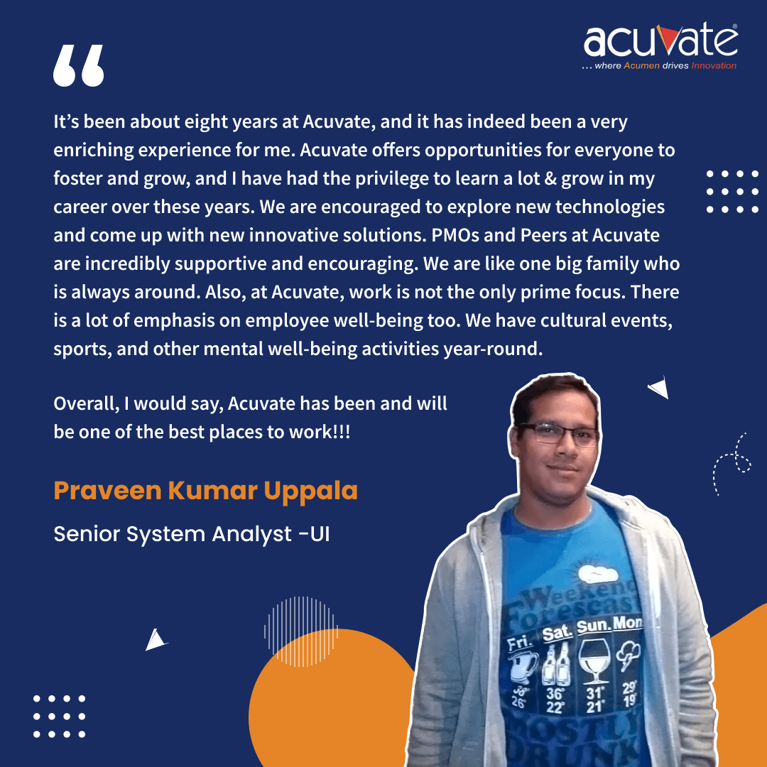 Traverse through our StoriesLife at Acuvate – People First Culture